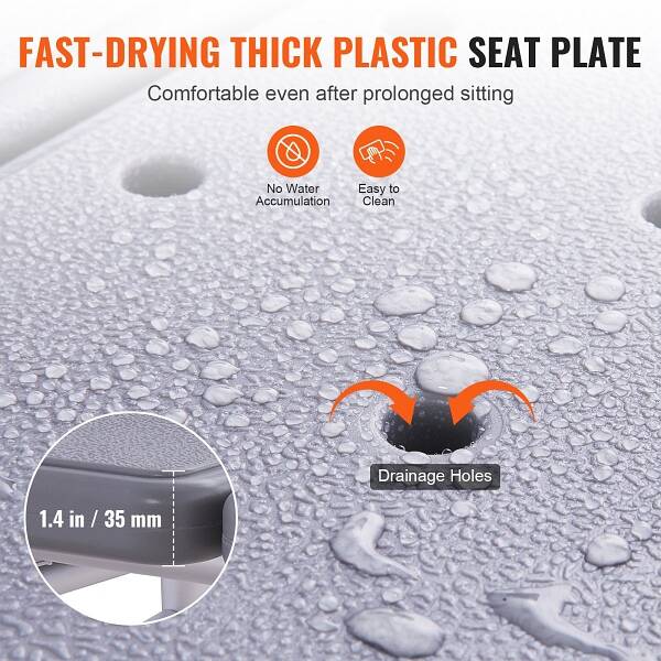 Bequemer und schnelltrocknender Sitz: Verabschieden Sie sich von kalten, harten Sitzen! Unsere umkehrbare Rückenlehne und die 1,4 Zoll dicke Sitzplatte aus weichem HDPE-Kunststoff sorgen für ein gemütliches und bequemes Gefühl. Mit mehreren Abflusslöchern trocknet er schnell und verhindert Wasseransammlungen. Wischen Sie ihn nach dem Gebrauch einfach ab, leicht zu reinigen und zu pflegen!