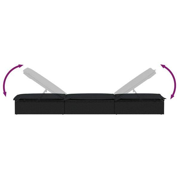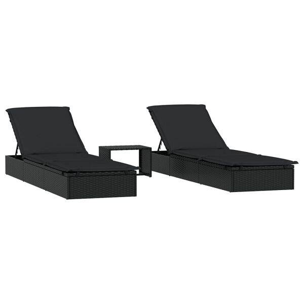 vidaXL Sonnenliegen 2 Stück mit Tisch Schwarz Poly Rattan, 319636, 8720845670672
